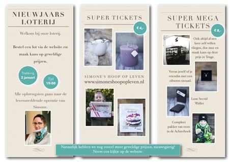 Ook zal er op de website en social media een overzicht geplaatst worden met de prijzen incl. winnende lotnummers.